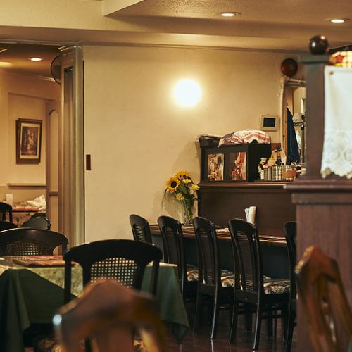 シックでクラシックな雰囲気を独り占めできるカウンター席をご用意しています。アンティーク調の家具が並ぶ空間で、お二人だけの特別なディナーデートはもちろん、手作りの絶品洋食を堪能する優雅なランチタイムにも最適。落ち着いた空間で老舗の味をお楽しみください。